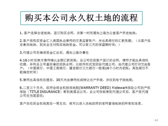 在土地所有权转让给你之前,所有的资金是放在美国一家执业律师的托管信用账户中,任何人都无法拿取,并出具相应的收据证明。